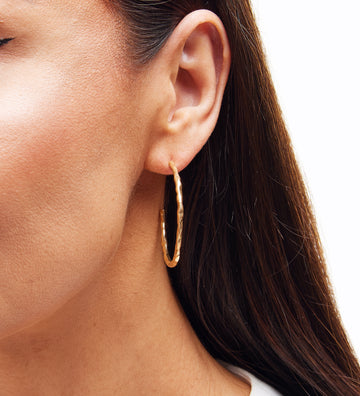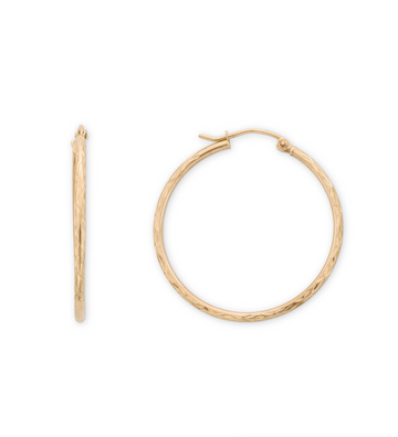 Everyday Textured Large 14k Solid Gold Hoop