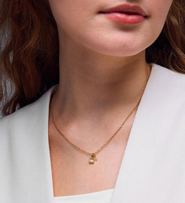 18k Gold Plated Pave CZ Lock Pendant Necklace